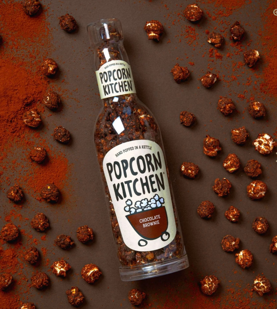 Our hand-popped gourmet popcorn coated in a dark chocolatey coat made with real Belgian chocolate and then packed into our novelty gift bottle format.
