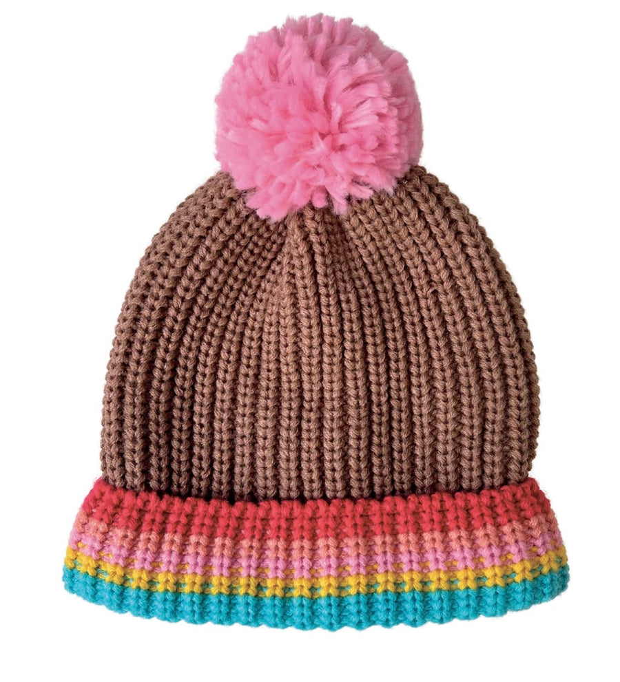 Add a pop of colour this winter with our rainbow stripe knitted hat. Designed with a fun rainbow striped cuff and topped with a bright pink pom pom bobble, it's also fleece lined for extra warmth. Available in sizes 3-6 years and 7-10 years.