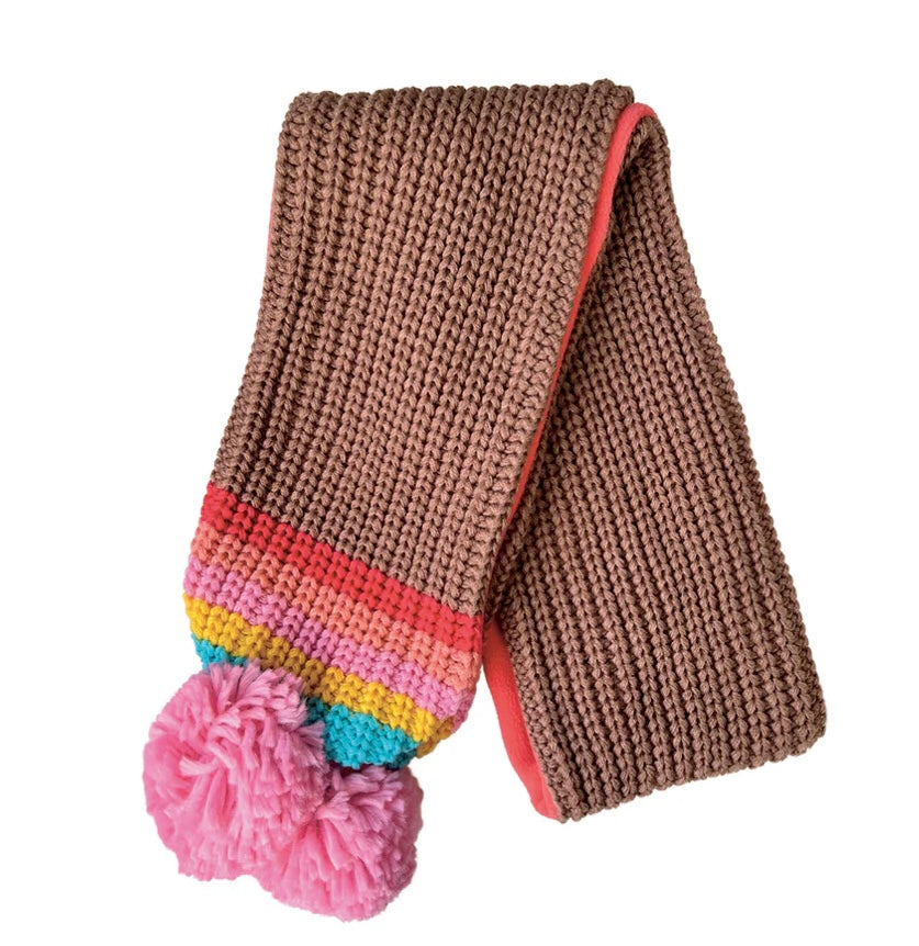Add a pop of colour this winter with our fun rainbow stripe scarf! Designed with bright rainbow stripes and a bright pink pom pom at each end, this scarf is also fully fleece lined for added cosiness.