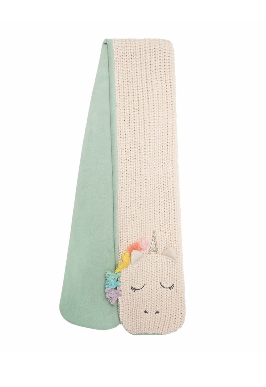 We believe in unicorns, and you can too! Our magical rainbow unicorn knitted scarf has a sweet embroidered face, a gold shimmering horn and a rainbow tuft mane. This scarf is also fleece lined for extra warmth! Perfect for keeping warm on all your magical adventures!