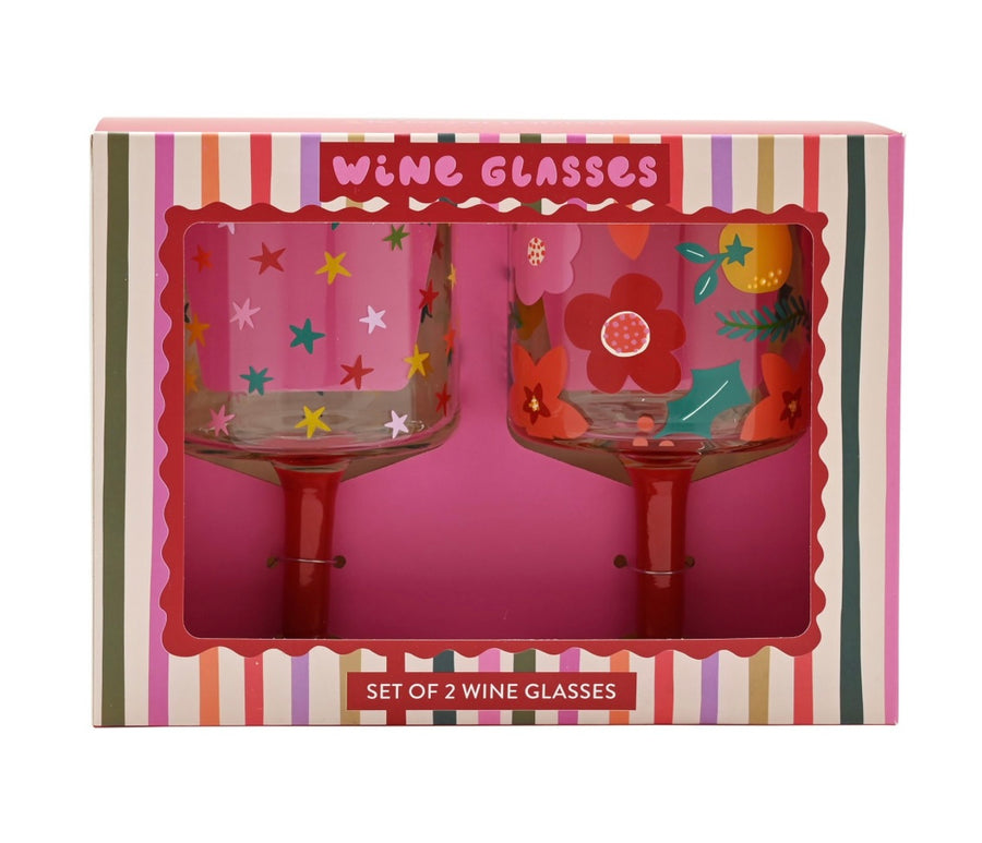 Chin Chin” with this pair of unique drinking glasses. Lovingly designed by Raspberry Blossom® Exclusively available, these colourful stemmed glasses are a super stylish pair. Designed in collaboration with Raspberry blossom we bring you a joyful branded collection of homeware and decorative gifts, inspired by the illustrations from this award-winning greeting card brand.