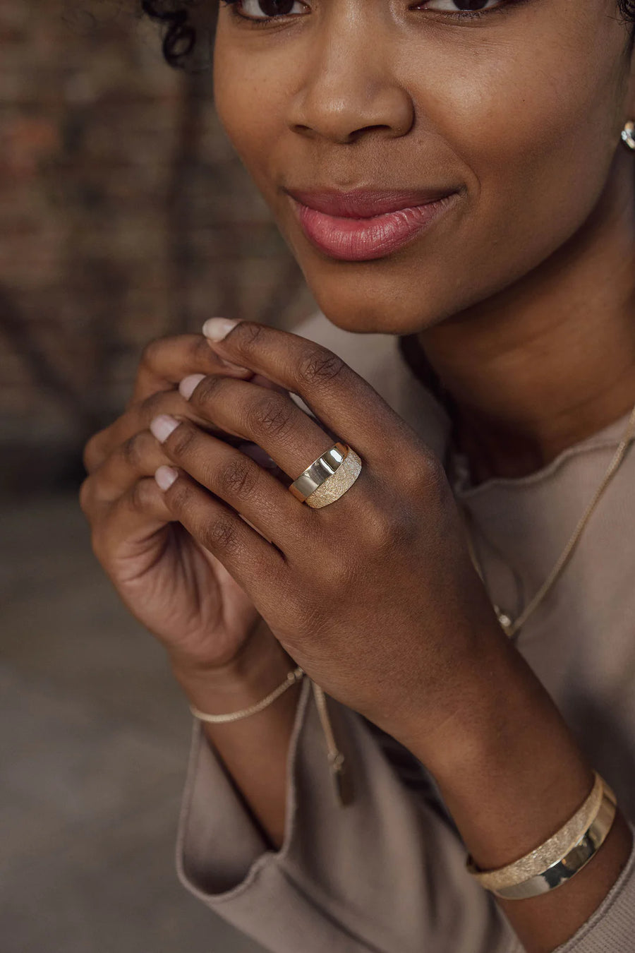 Brass base plated with Gold. Finished with an anti-tarnish, water resistant coating.