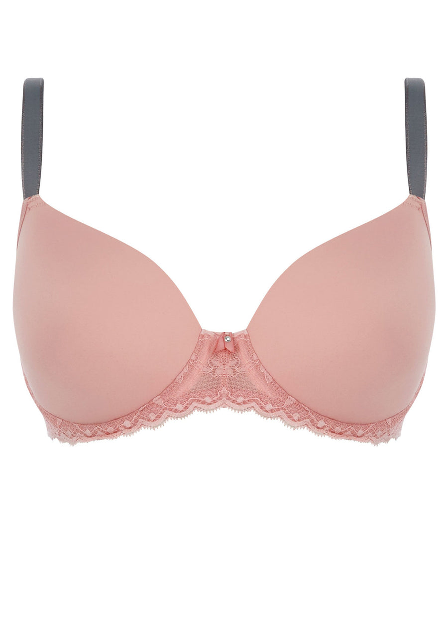 Freya's Offbeat Demi Plunge Moulded Bra returns in an ultra-feminine Rosehip hue. Crafted with seamless cups for a smooth shape underneath clothing, the look is finished with delicate lace and contrasting adjustable straps.
