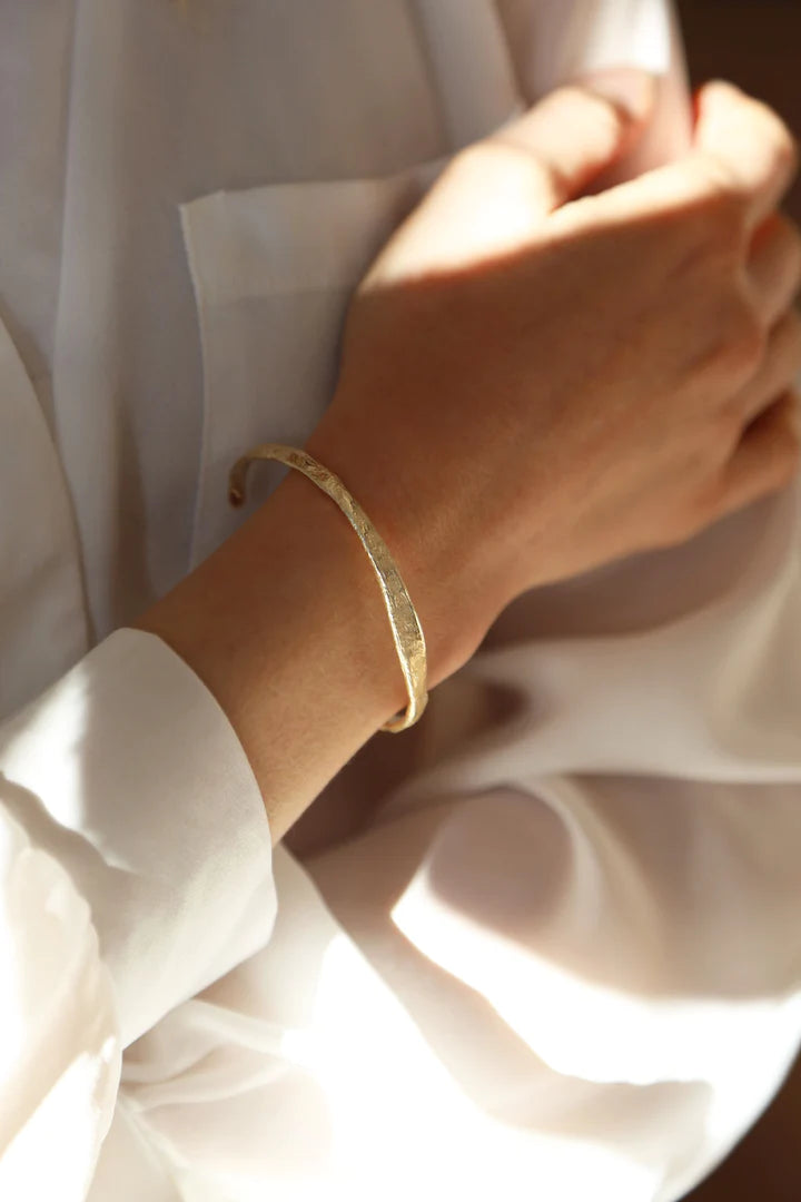 An adjustable bangle for everyday wear, designed to an uneven, wave-like shape for an eye-catching finish.