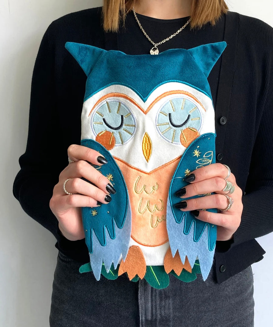 Features: Twit twoo! This luxurious owl hot water bottel will keep you warm on chilly nights. Covered in super soft velvet with felt details, this cover is finished with a gorgeous gold foliage pattern spreading across the wings. This would make a lovely gift (or a treat to yourself!)