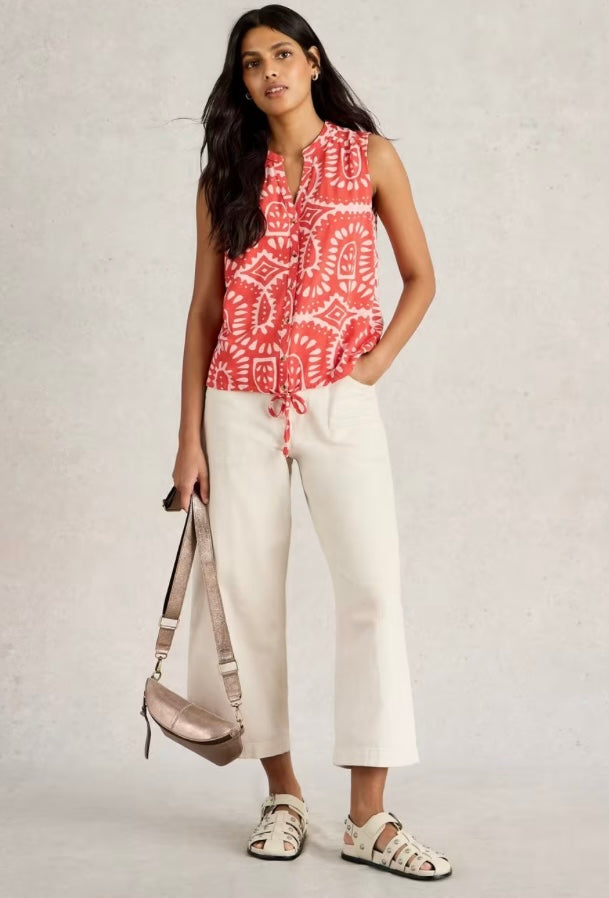 Summon the sun with this sleeveless shirt. (If it doesn't work, you could always take it on holiday.) The tie detail and embroidery wouldn't look out of place, that's for sure.