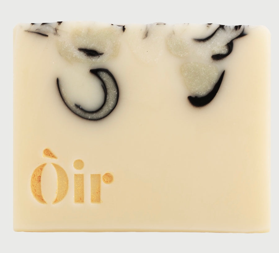 Ingredients: sodium olivate (olive oil), sodium cocoate (coconut oil), sodium shea butterate (shea butter), sodium castorate (castor oil), sodium cocoa butterate (cocoa butter), aqua (water), glycerine, lavandula officinalis flower oil (lavender essential oil), mentha piperita oil (peppermint essential oil), pogostemon cablin leaf oil (patchouli essential oil), melaleuca alternifolia leaf oil (tea tree essential oil), charcoal powder, illite, montmorillonite, gold mica (CI 77019, 77891, 77491)