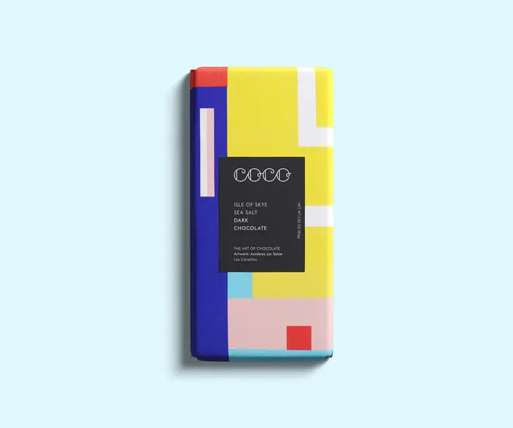 Sweet smoothness with a pinch of sea salt from the Isle of Skye. Ingredients - Cocoa Mass, Sugar, Cocoa Butter, Emulsifier: Non-GMO SoyaLecithin, Vanilla Extract, Isle of Skye Sea Salt (<1%). Certifications - Vegetarian, Vegan, Gluten Free, Dairy Free, Palm Oil Free, Free from artificial colours and flavours. Case size - 8 x 16 x 16.5cm. Weight - 80g.