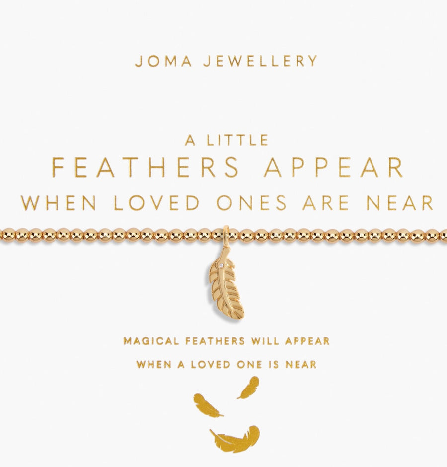 Our iconic A Little Collection has had a golden makeover! This 'Feathers Appear When Loved Ones Are Near' Bracelet will create the most memorable gifting moment, boasting a stretch-bead style that ensures a comfortable fit on any wrist. The bracelet is adorned with a beautiful gold-plated charm, which is wrapped around one of our stylised cards and framed by a heartfelt poem. A must-have for all our gold-loving girls!