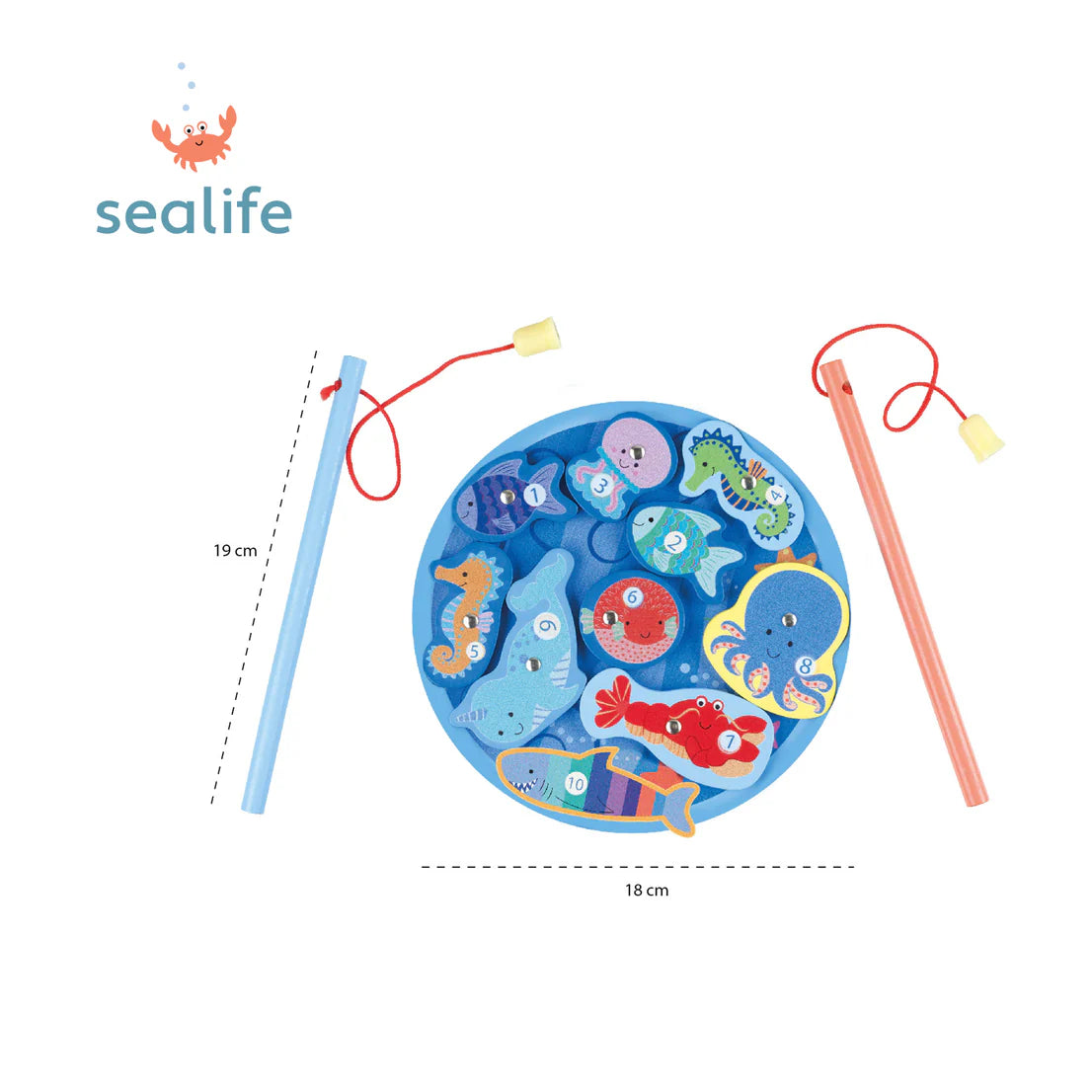 This fishing game is perfect to play with friends! It contains 2 magnetic rods, and 10 colourful sealife creatures, each numbered 1 -10, which could be collected in sequence, or as points when collecting fish!
