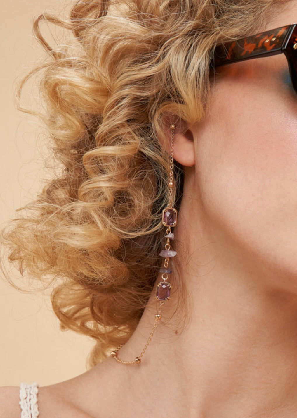 This sunglasses chain with delicate amethyst details is the perfect elegant eyewear accessory for those days when the sun just won’t make up its mind! With a sweet little piece of Powder packaging this chain is ready to gift!