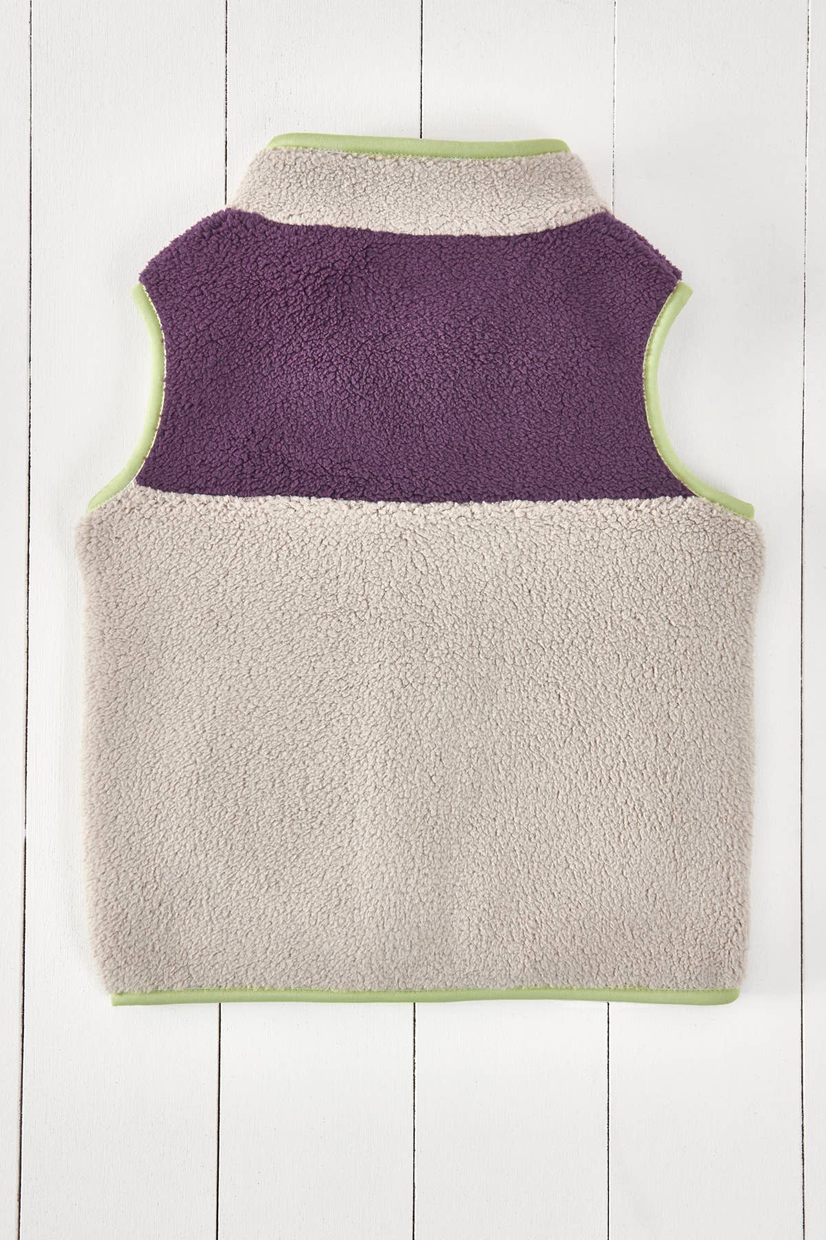 Introducing our Kids Borg Fleece Gilet, a snug homage to the mystical allure of the Icelandic Fjords. This cosy gillet includes the cooler hues of Geothermal Grey and Icelandic Amethyst for a more neutral and soothing nod to Iceland’s rugged terrain. Meticulously crafted, this gilet serves as an essential layer for young adventurers. Its plush Borg fleece offers both softness and warmth, ensuring comfort in all climates. The sleeveless design allows for complete freedom of movement, ideal for outdoor play. Plus, it features a convenient kangaroo patch pocket, perfect for storing treasures collected during outdoor escapades.
