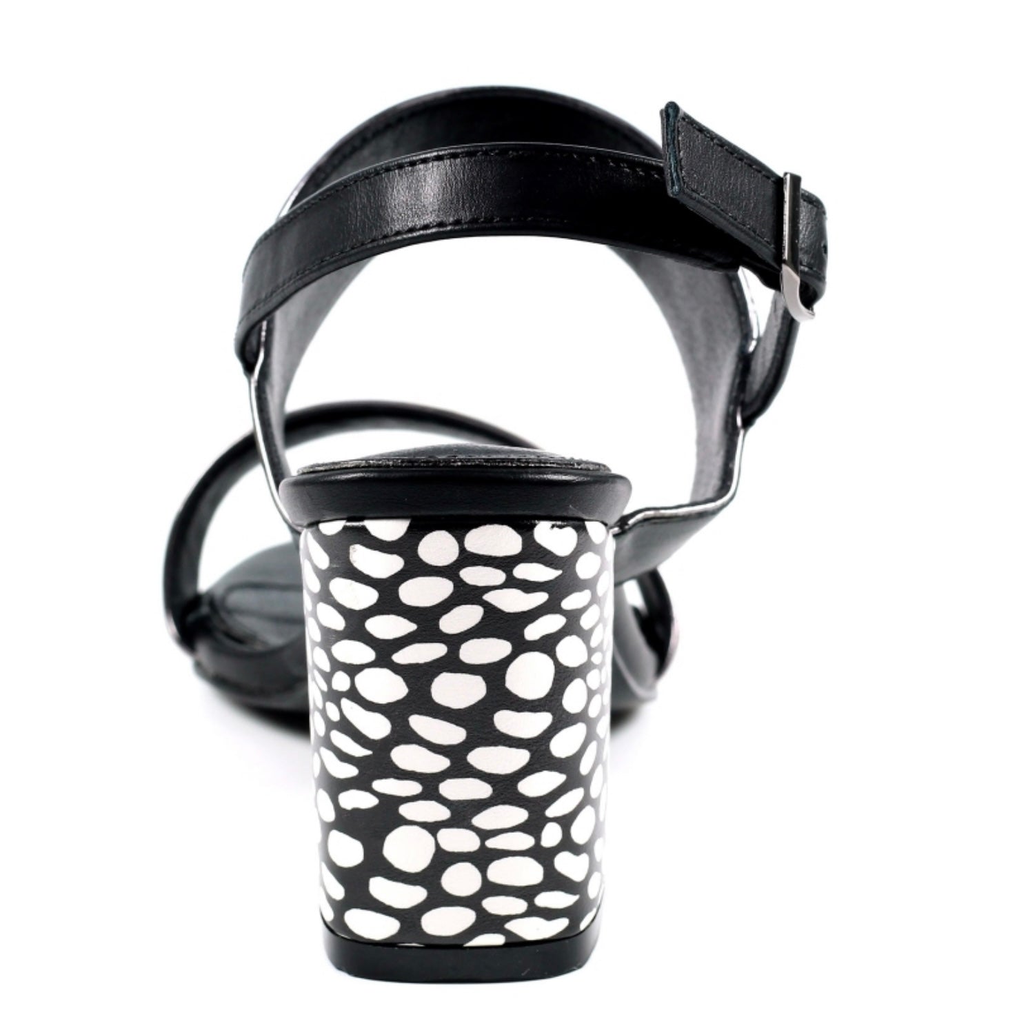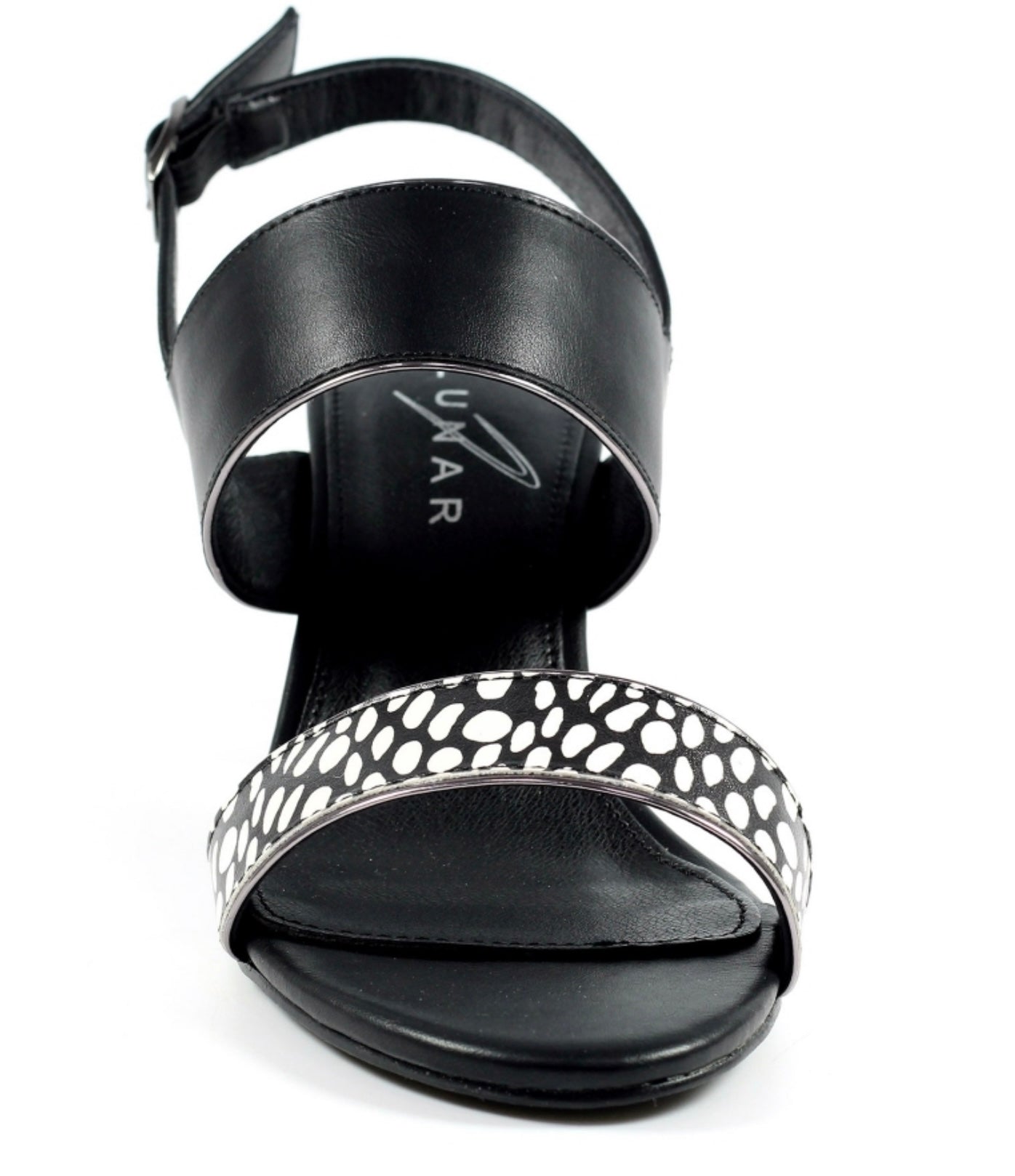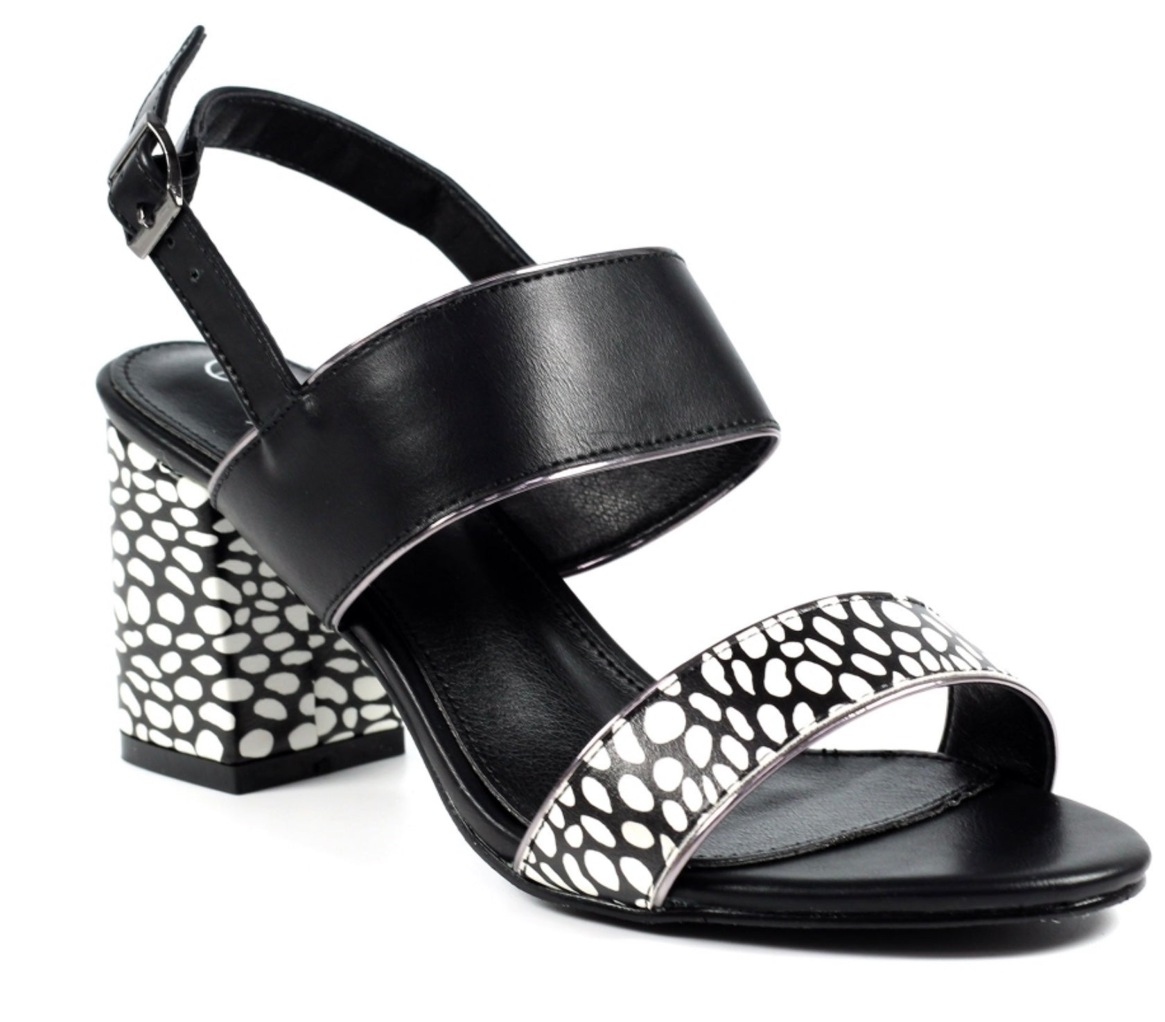 Darla sandals are perfect for casual wear or as an evening shoe. The upper is made from faux leather which gives it a luxurious feel. Featuring a block heel for stability and support. These shoes have padded insoles which add comfort and cushioning. They feature double straps which give them a stylish design. This pair of shoes has a spot pattern to lower which adds a unique touch