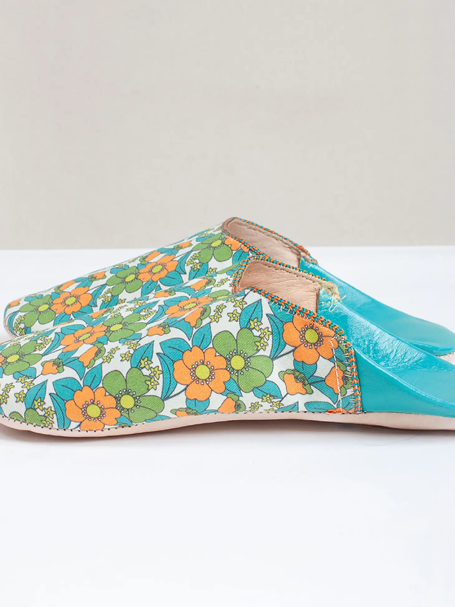 Featuring nostalgic patterns in a contrasting contemporary palette, our margot babouche slippers in aqua floral are a twist on a classic moroccan design. - Ethically handmade in morocco - Limited edition - 100% cotton twill uppers - Leather lining and leather soles - For indoor use only - Small | us 6 | eur 35-37 | uk 3-4 - Medium | us 7 | eur 38-39 | uk 5-6 - Large | us 9 | eur 40 | uk 7