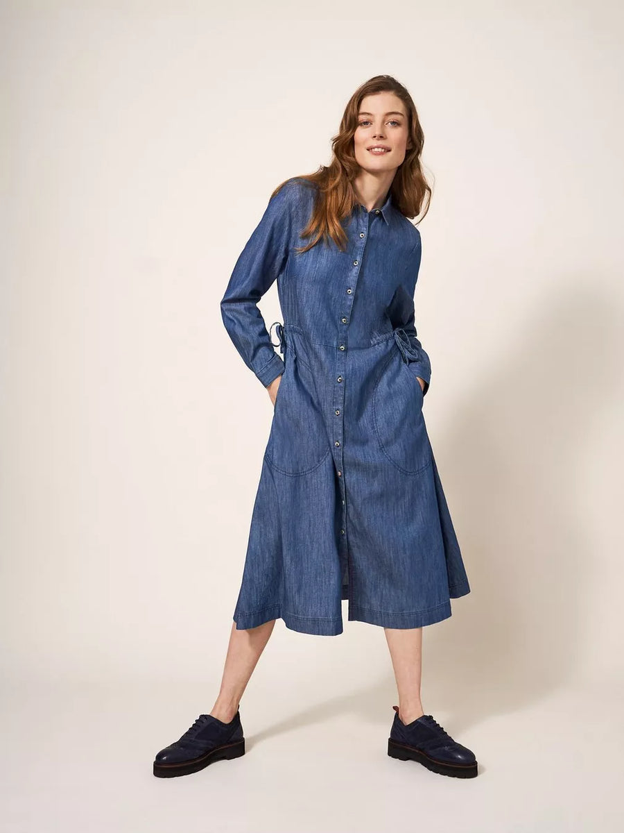 A new addition to your denim collection, in the form of this lightweight, buttoned midi dress. For when jeans just won't do.