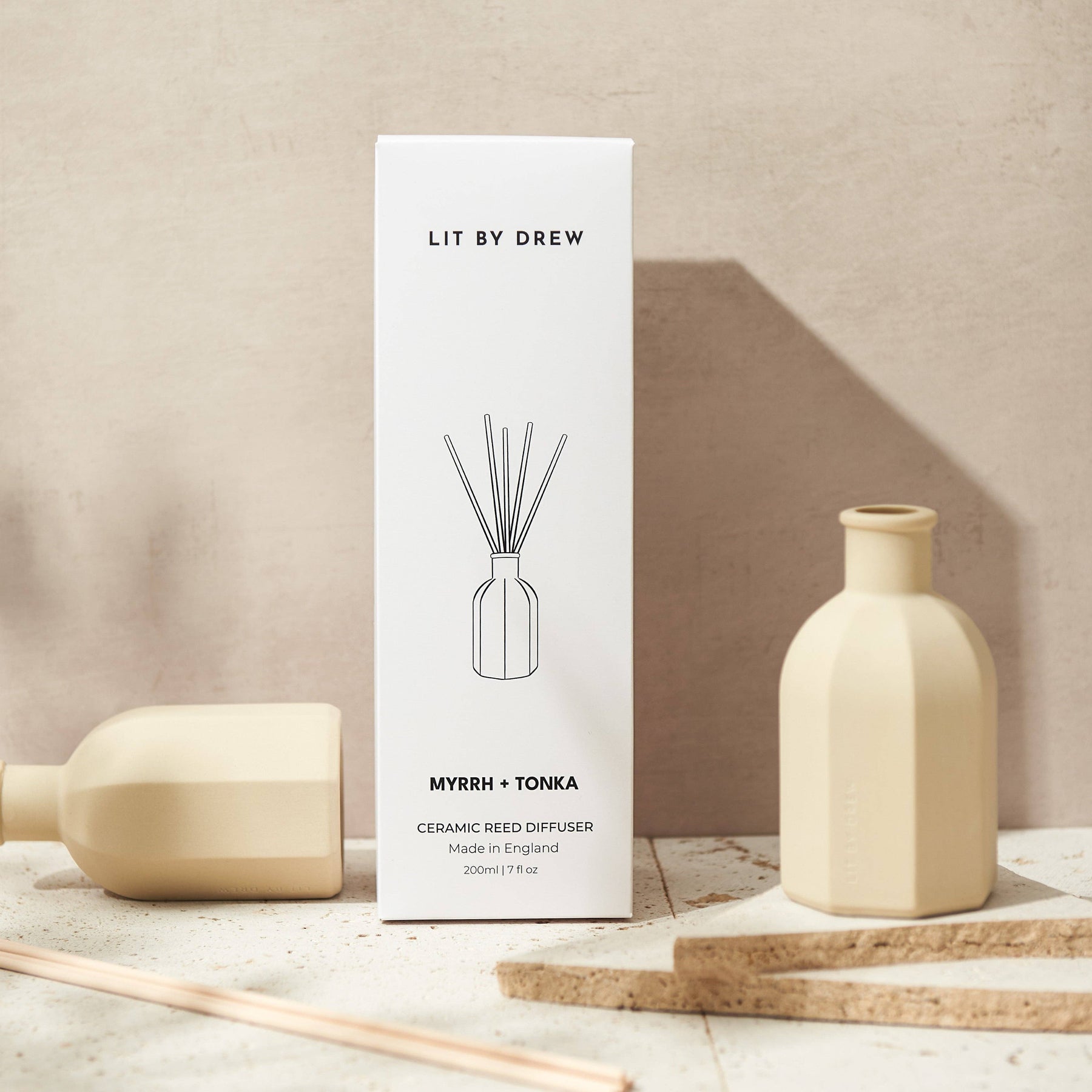 Scent your space without the need for a flame with our beautiful, long-lasting myrrh and tonka ceramic reed diffuser. Inspired by Scandinavian interior – this stunning neutral beige design adds a touch of style and elegance to the home, all whilst perfectly balancing the atmosphere.