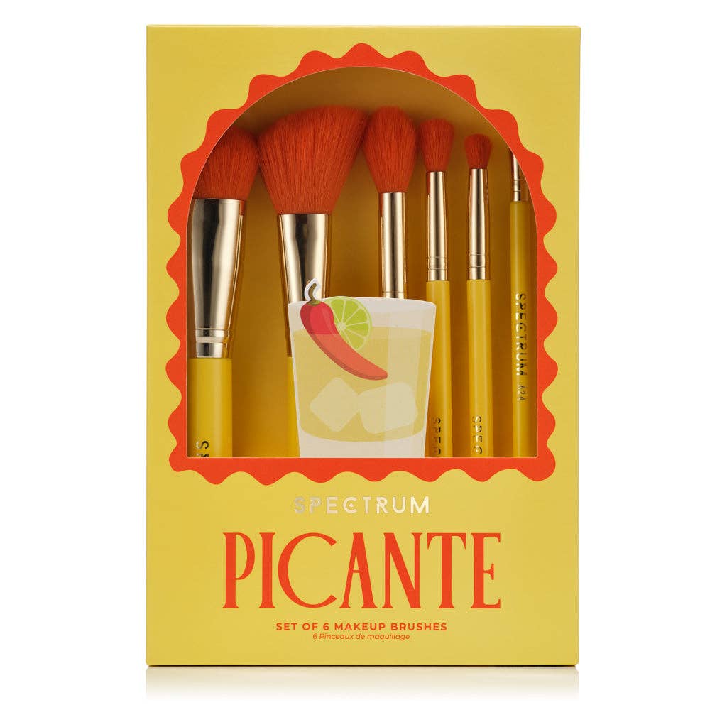 Raise the beauty bar with our 6-piece Cocktail Collection. The set includes the perfect mix of face, eye and brow brushes in bold shades inspired by our favourite drinks. Create a flawless use with the ease B13 brush, sculpt and make cheeks pop with the A05 cheek brush, brighten under eyes with concealer or add a pop of highlight with the B08 brush, beautifully blend eyeshadow with the B06 blending brush and define the crease and lash line with A12 fluffy pencil. Finally style brows into place with the A24 brow styler.