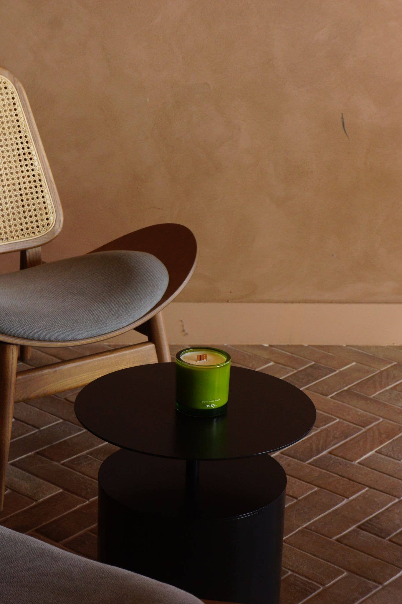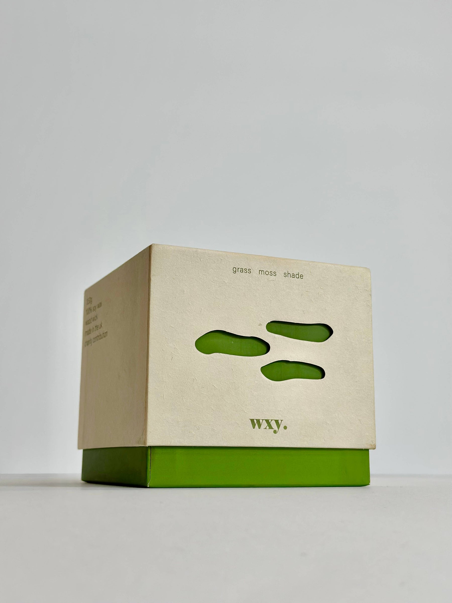 New Box Packaging! 12.5oz thick fresh green vessel containing 100% soy wax and wide wooden wick. For roamers at heart this fragrance is designed to evoke the fresh morning dew, the moss of the forest floor and meadow grasses. Made in the UK. Reusable glass. Charity contribution.